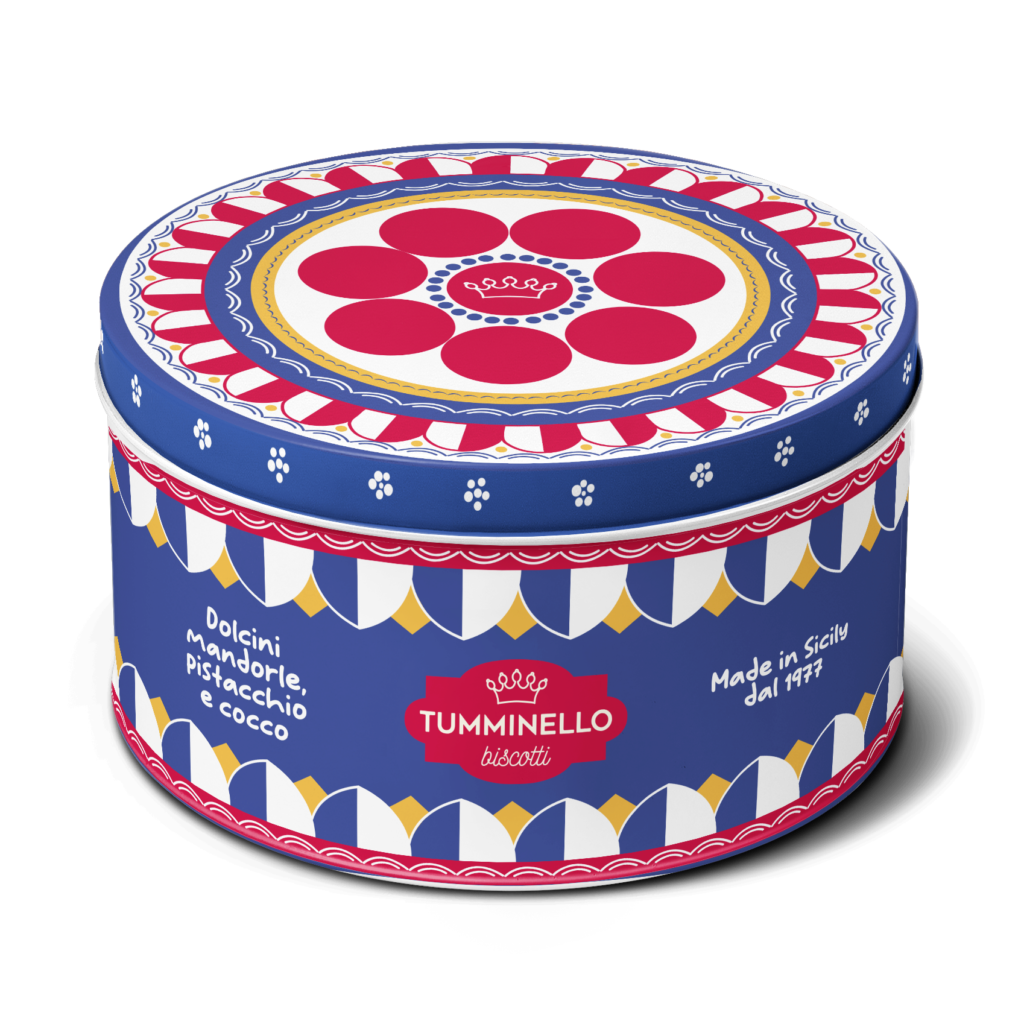 Biscotti in latta TIFEO Tumminello 250 g (ricci di mandorle, al pistacchio e praline al cocco)